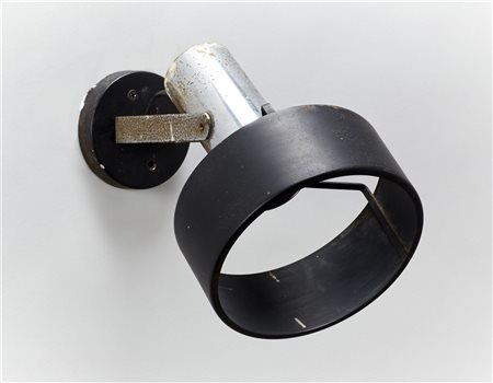 Faretto orientabile. Milano, anni '70. Acciaio cromato e verniciato nero. Recante marchio di produzione. (h cm 28,5; d cm 16) (difetti)