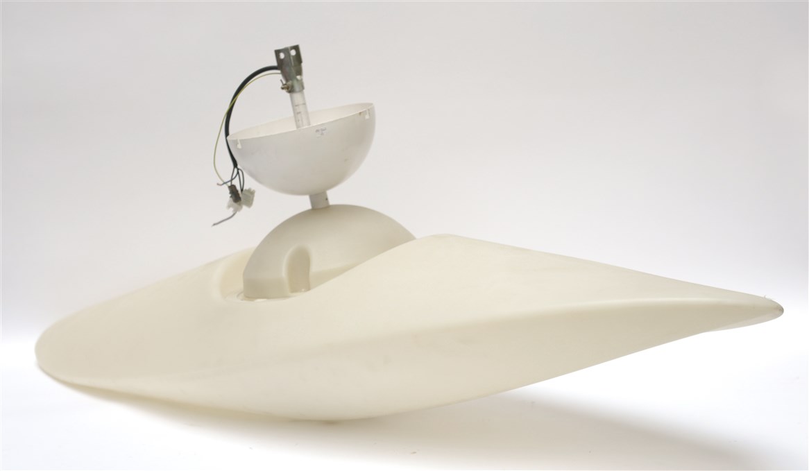 Lampada a sospensione. Milano, anni '70. Plastica e metallo verniciato bianco. (cm 124x56x40) (lievi difetti e mancanze)
