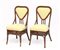 Coppia di sedie in vimini con seduta e schienale in stoffa a righe. Prima metà