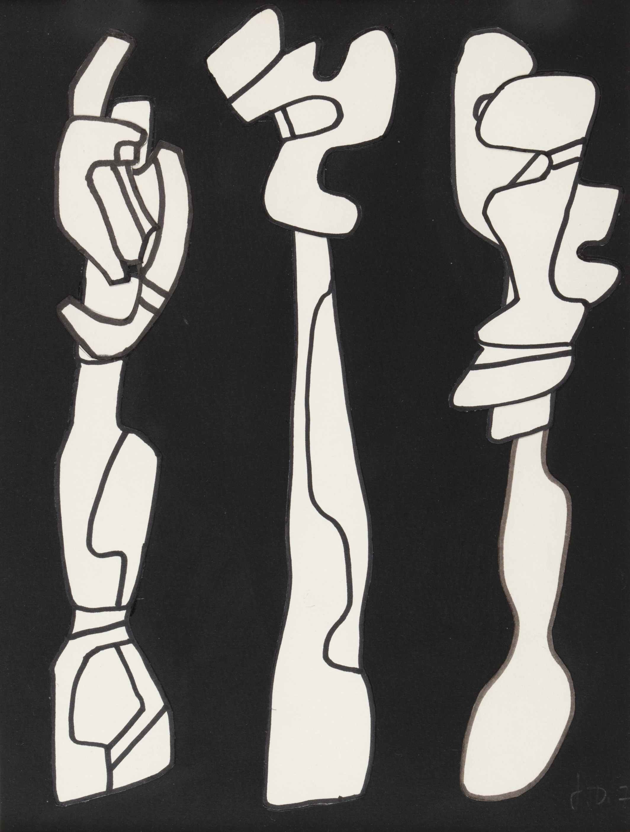 JEAN DUBUFFET Trois arbres 1971 marker P 163 ritagliato e incollato su carta nera cm 31 x 24 firmato e datato in basso a destra pubblicato sul catalogo Generale di Dubuffet