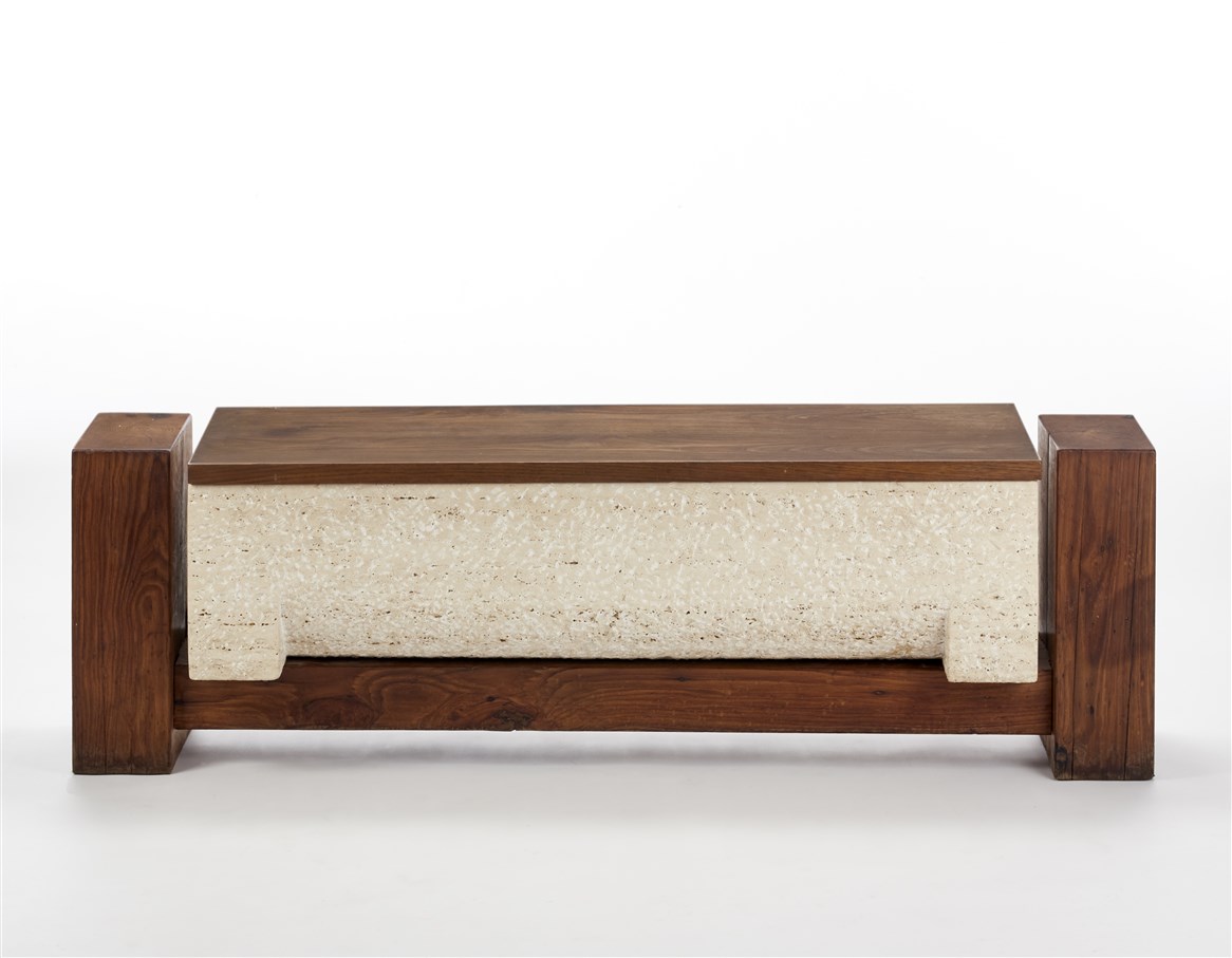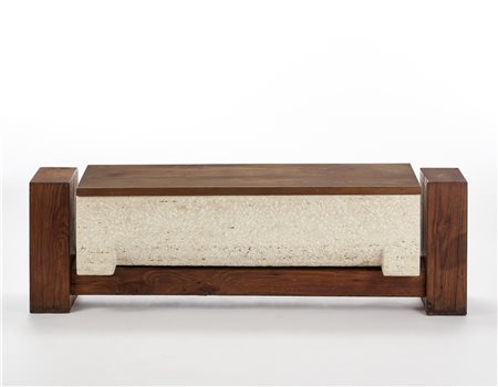 Pietro Cascella Cassapanca in travertino e legno massello. Italia, anni '50/'60.