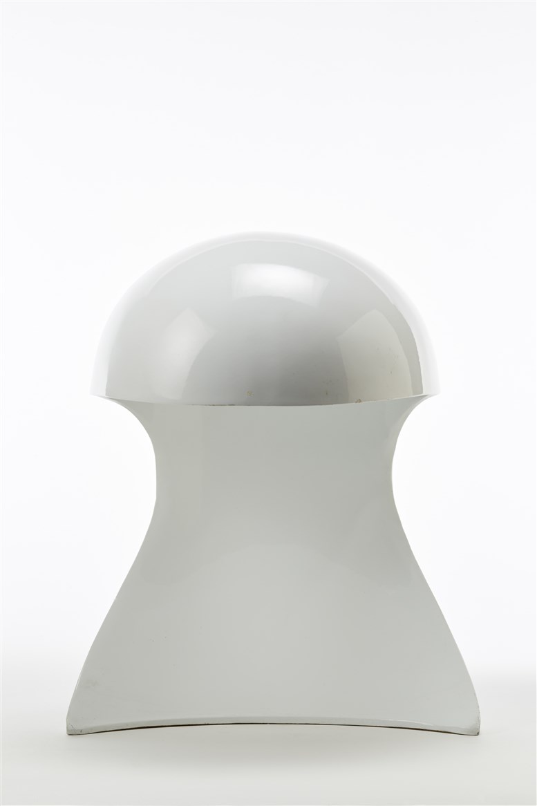Lampada da tavolo modello "Dania". Produzione Artemide, MiIano, 1969. Fusione di alluminio laccato bianco. (cm 34x41x34) (lievi difetti)