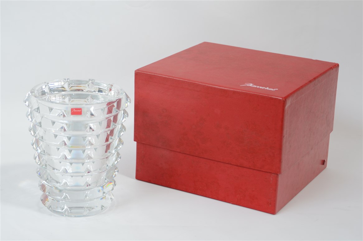 Baccarat Vaso in cristallo di gusto déco a fasce orizzontali tassellate. Francia