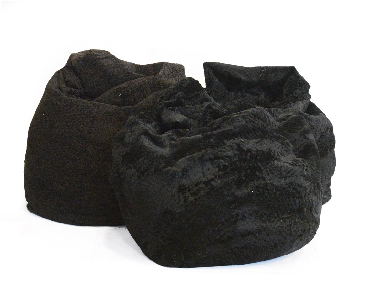 Lotto di tre poltrone a sacco con involucro bouclé contenente perle in polistir