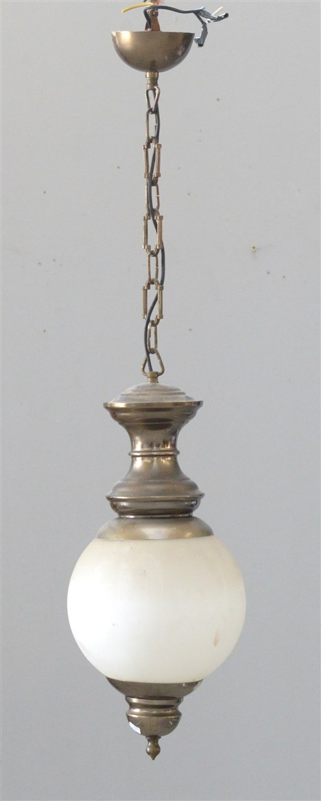 Piccola lampada a sospensione con struttura in ottone nichelato e diffusore sfe