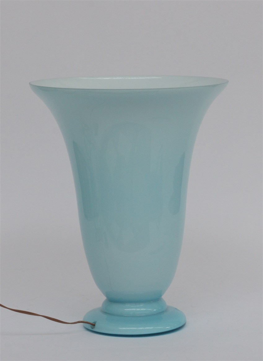 Lampada da tavolo in vetro incamiciato celeste. Epoca recente. (h cm 38) (lievi difetti)