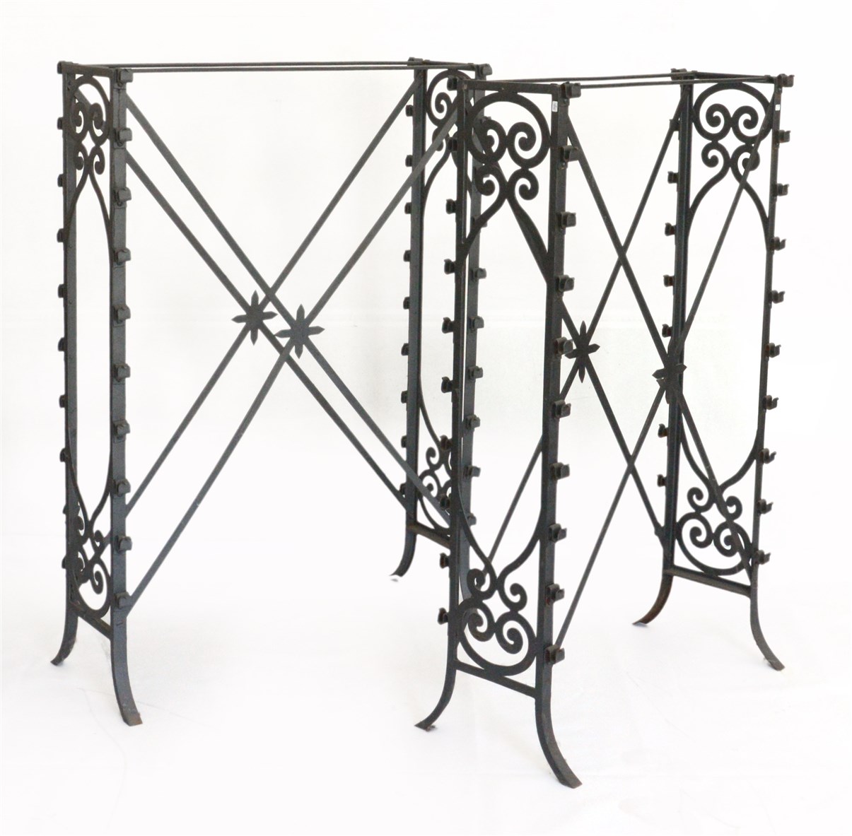 Coppia di curiosi porta spade in ferro dipinti. Inizi secolo XX