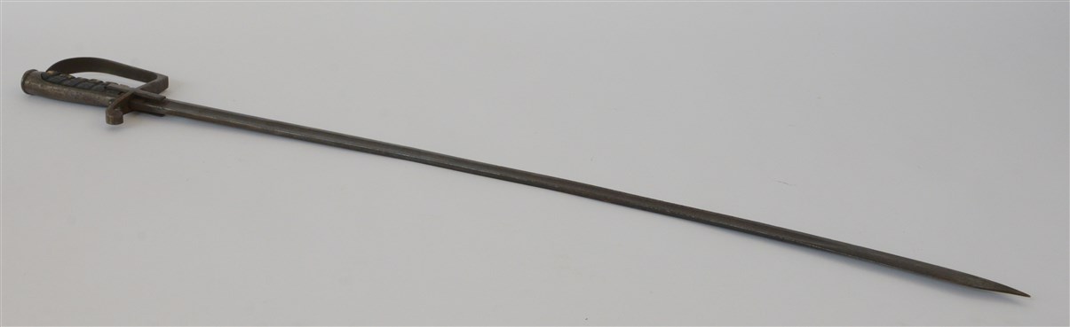 Sciabola da ufficiale di fanteria modello 1855. Lama parzialmente incisa con importanti segni di usura ed ossidazione. (cm 92) (difetti)