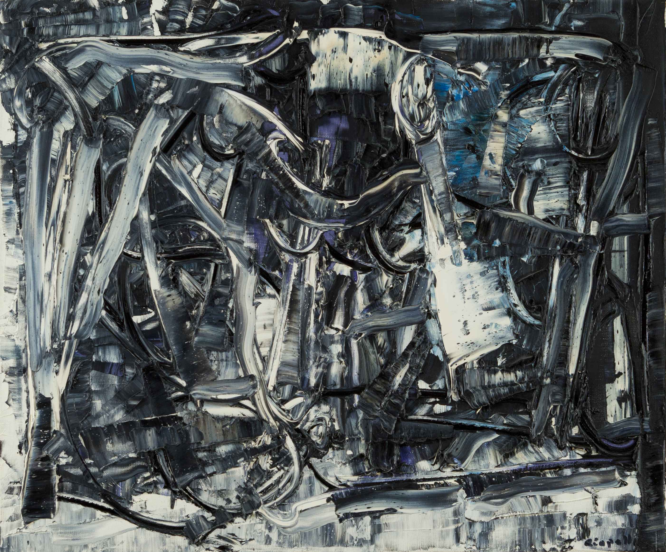 JEAN PAUL RIOPELLE Senza titolo 1960 olio su tela cm 54 x 65 firmato in basso a destra autentica di Yseult Riopelle n°349-CA-SVI numero temporaneo d'iscrizione al catalogo ragionato 1940.088H