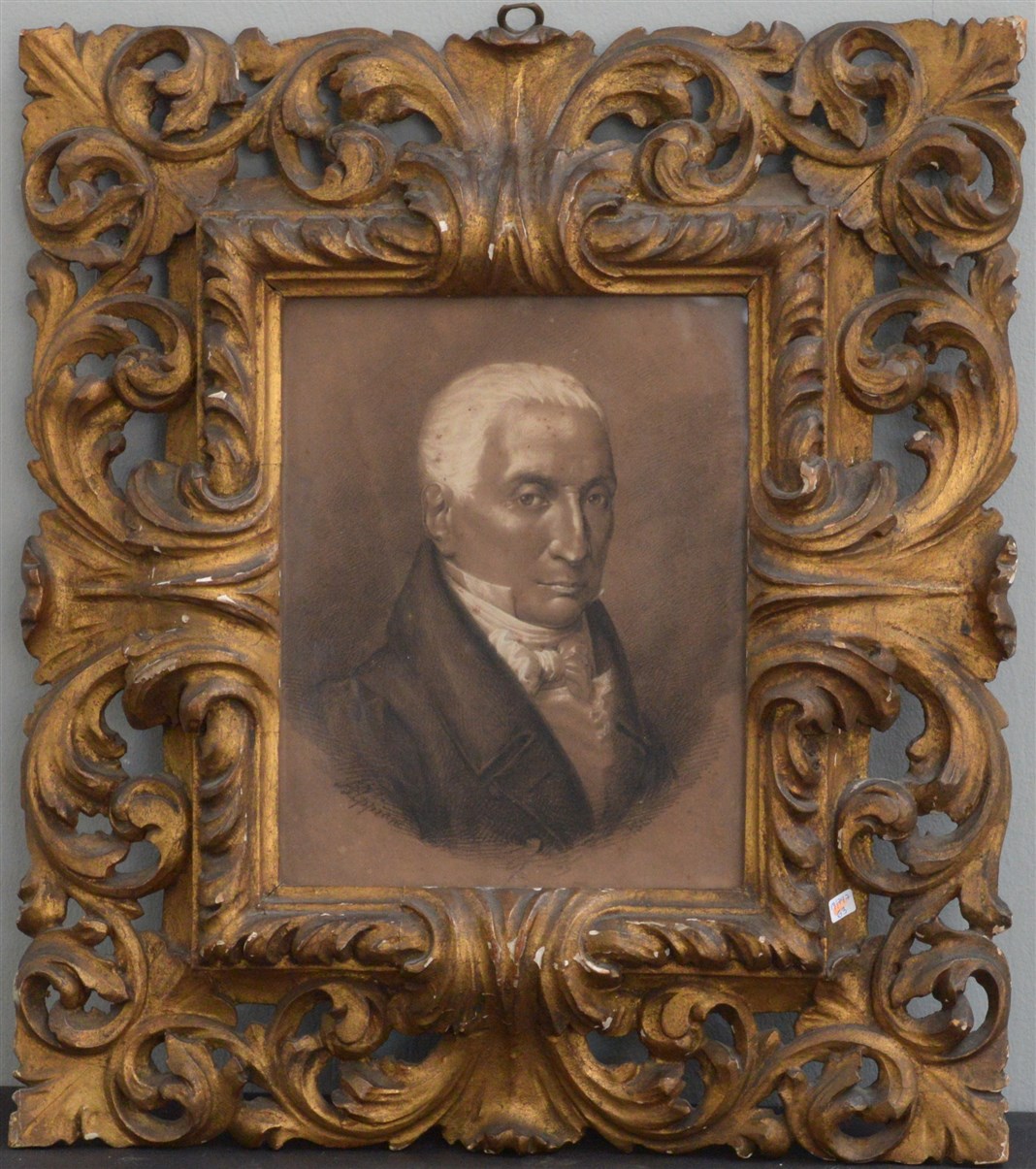 (Attribuito) "Ritratto maschile" 1815, disegno a matita, carboncino e biacca (cm 29x24) Datato in basso a destra, firmato in basso a sinistra. In cornice (difetti)