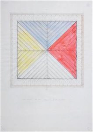 Carlo Cremaschi Modena 1943 Studio progetto: la rosa dei venti, 1972 Tecnica mista su carta quadrettata, cm. 100x70 Firma, data e titolo in basso al centro: Carlo Cremaschi 1972 febbraio Studio - progetto: la rosa dei venti / mate- riali - tela, legno, colori all'anilina, fili. Storia: Galleria Flori, Montecatini Terme - Firenze; Col- lezione privata