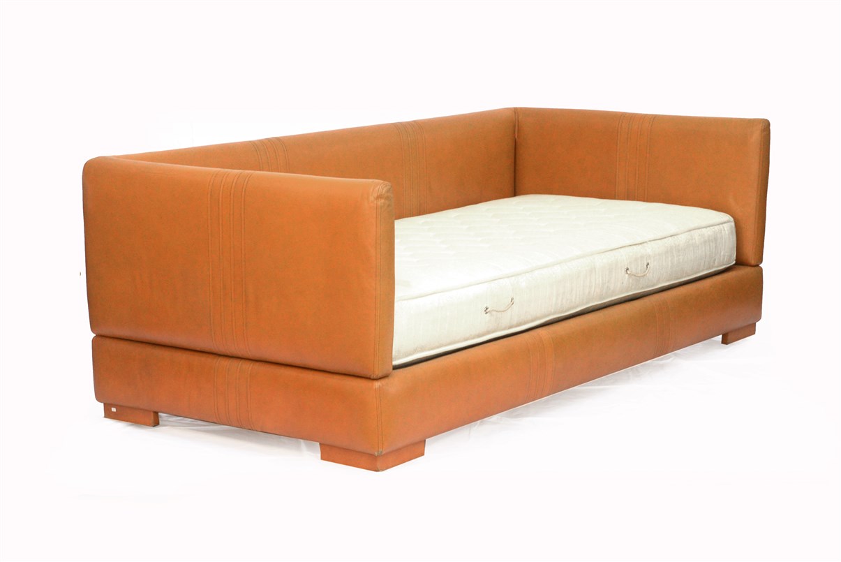 Lotto 3030 | Grande divano letto a tre posti in pelle marrone chiaro (mancante della copertu