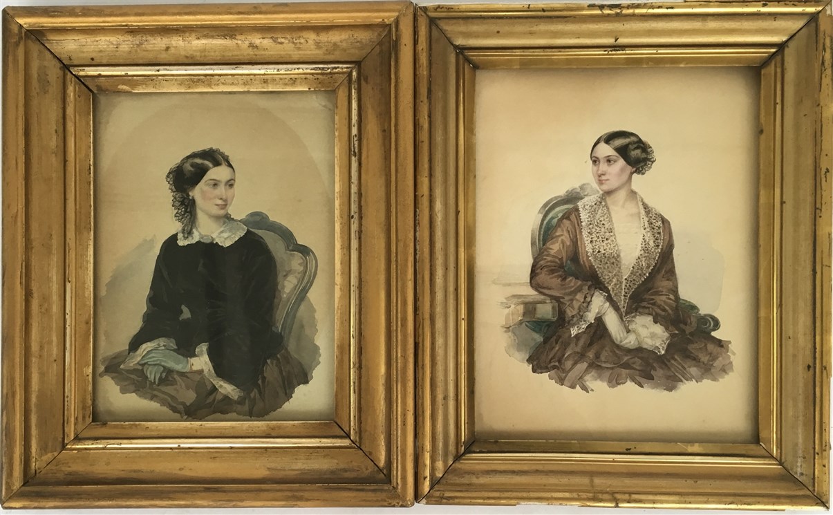 Scuola del secolo XIX ''Gentildonne'' coppia di acquerelli su carta (cm 26x20) In cornici