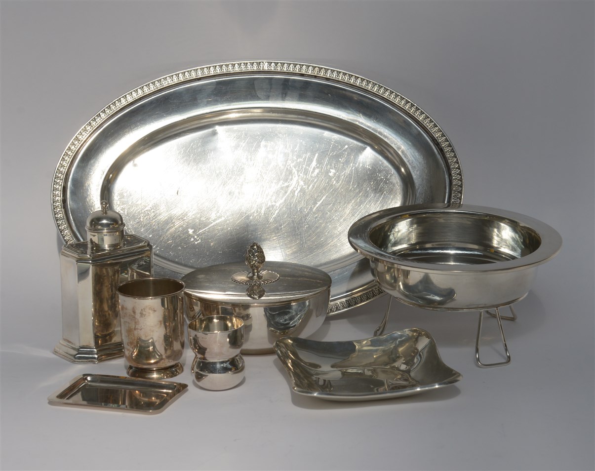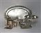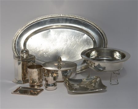 Lotto composto da un vassoio ovale, una ciotola con sostegno, due scatole con coperchio, due bicchierini e due piattini (gr 1510) (difetti)