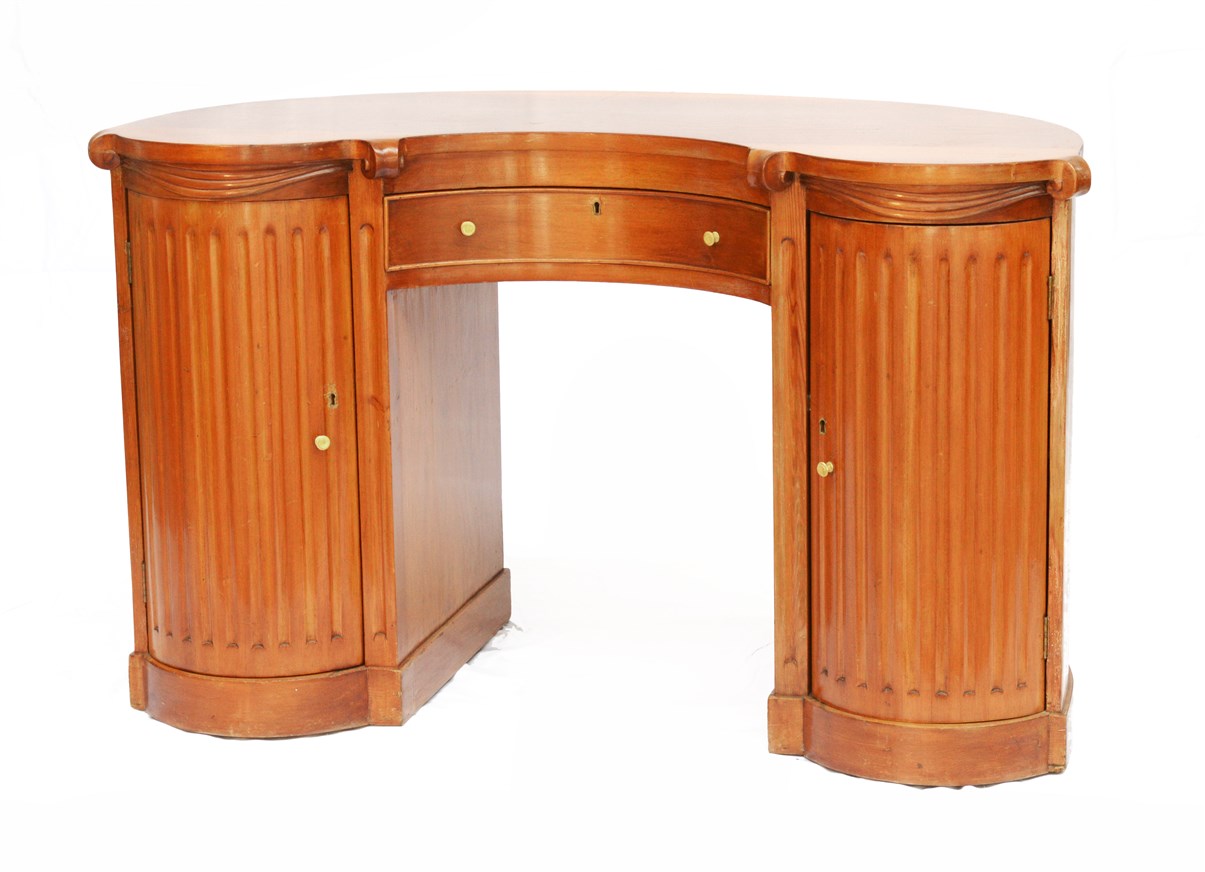 Lotto 3087 | Scrittoio da centro "a fagiolo" ad un cassetto e due sportelli a finta colonna