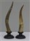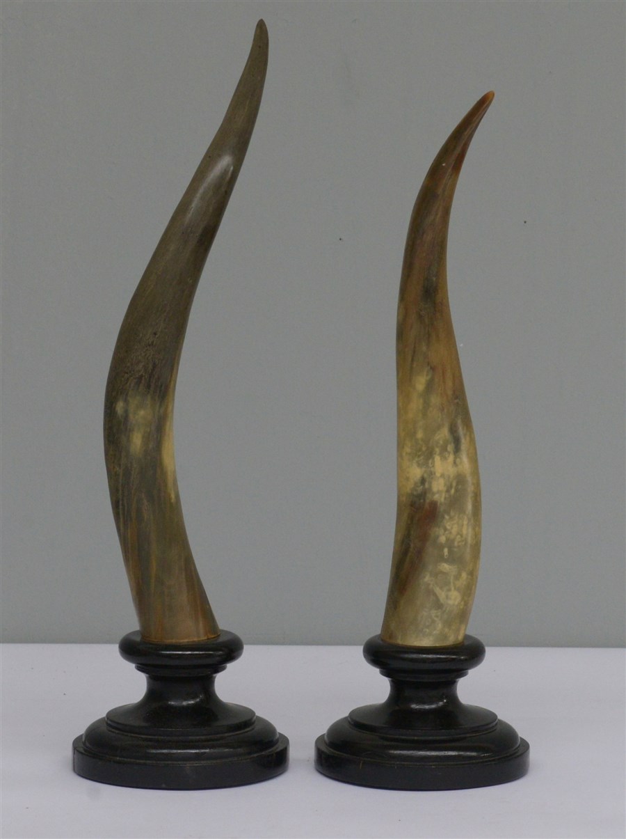 Lotto 3110 | Coppia di elementi decorativi a forma di corna su basi tornite in legno ebanizz