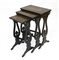 Gruppo di tre tavolini a nido in legno laccato nero e dipinto in policromia e o