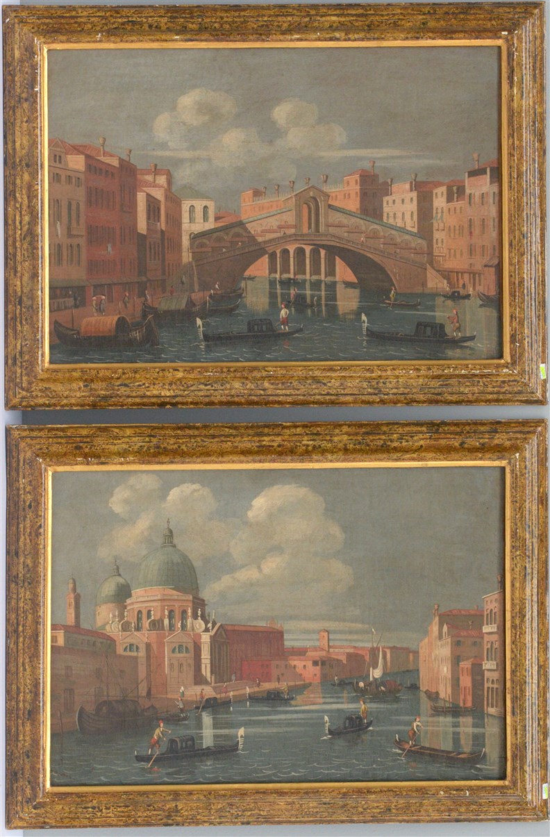 Ignoto "Scorcio di Venezia" coppia di antichi dipinti ad olio su tela (cm 35x50) in cornici (difetti e restauri)