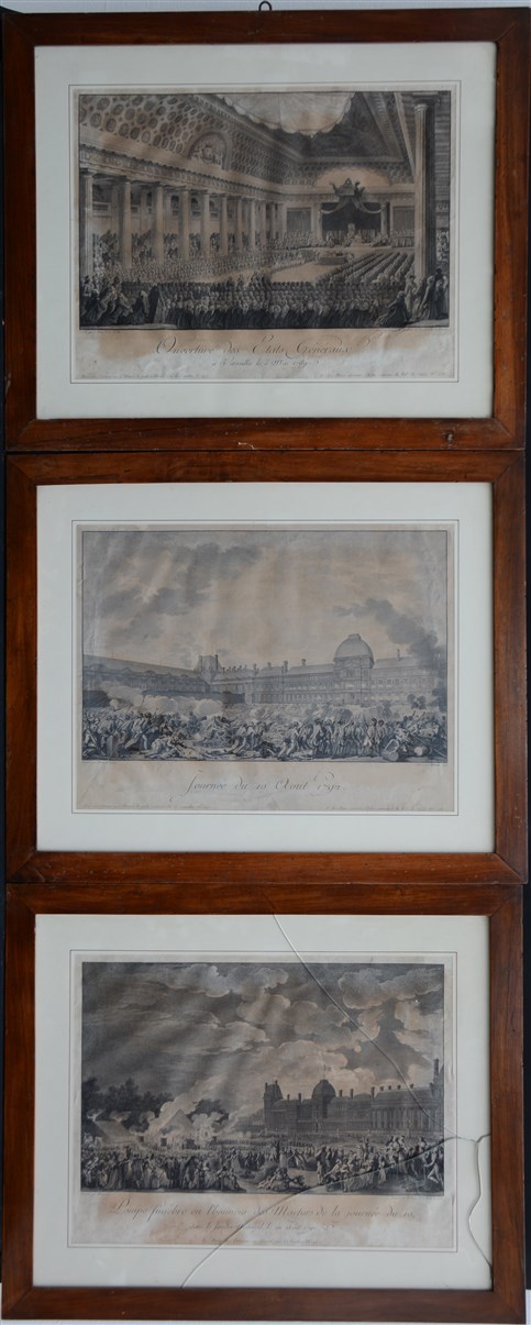 Helman, gruppo di sei incisioni raffiguranti episodi della rivoluzione francese (cm 43x54) in cornici (difetti)