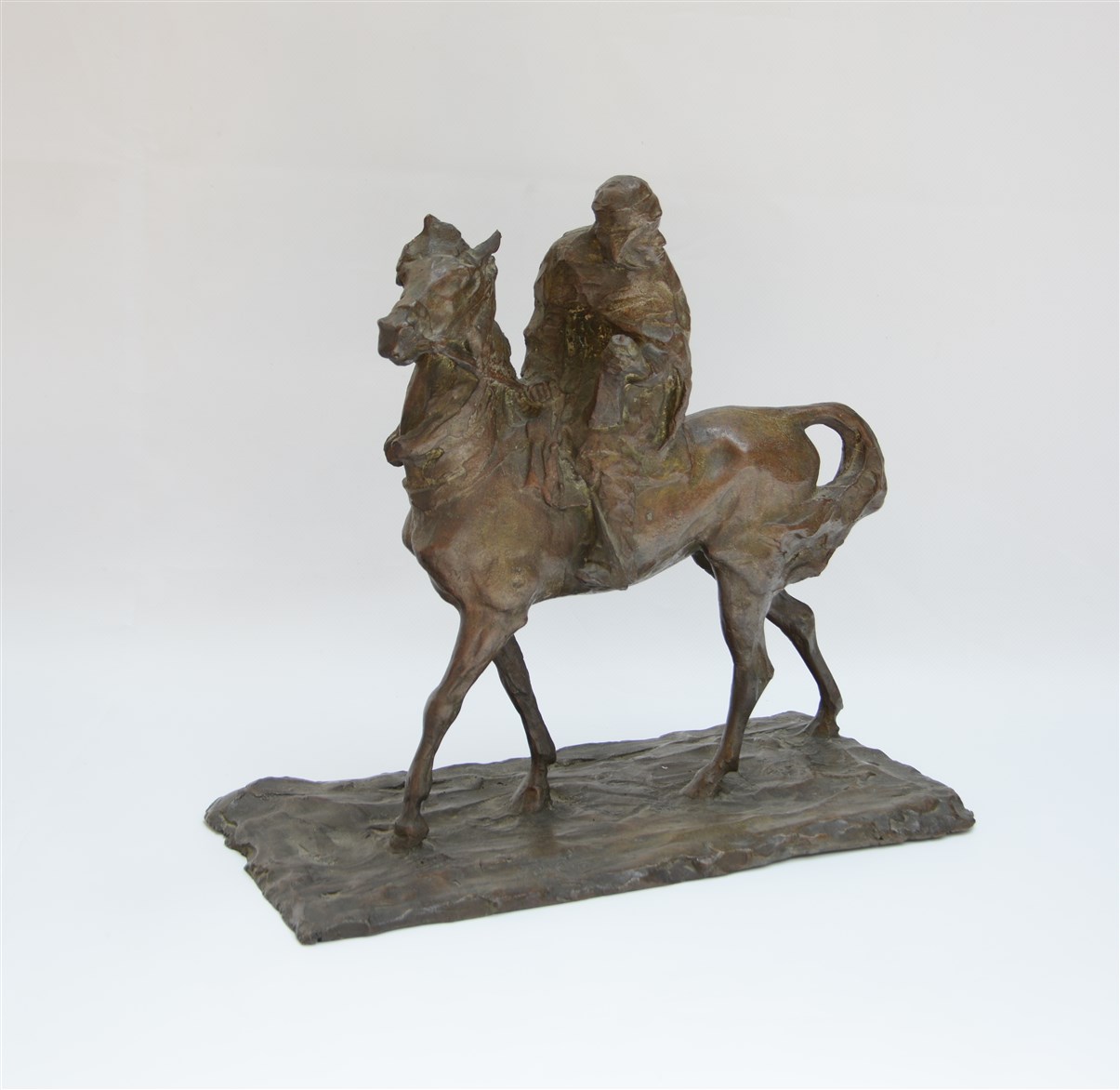 A. De Conciliis - ''Cavaliere berbero'', scultura in bronzo (cm 39x36x19) firmata alla base (lievi difetti e mancanze)