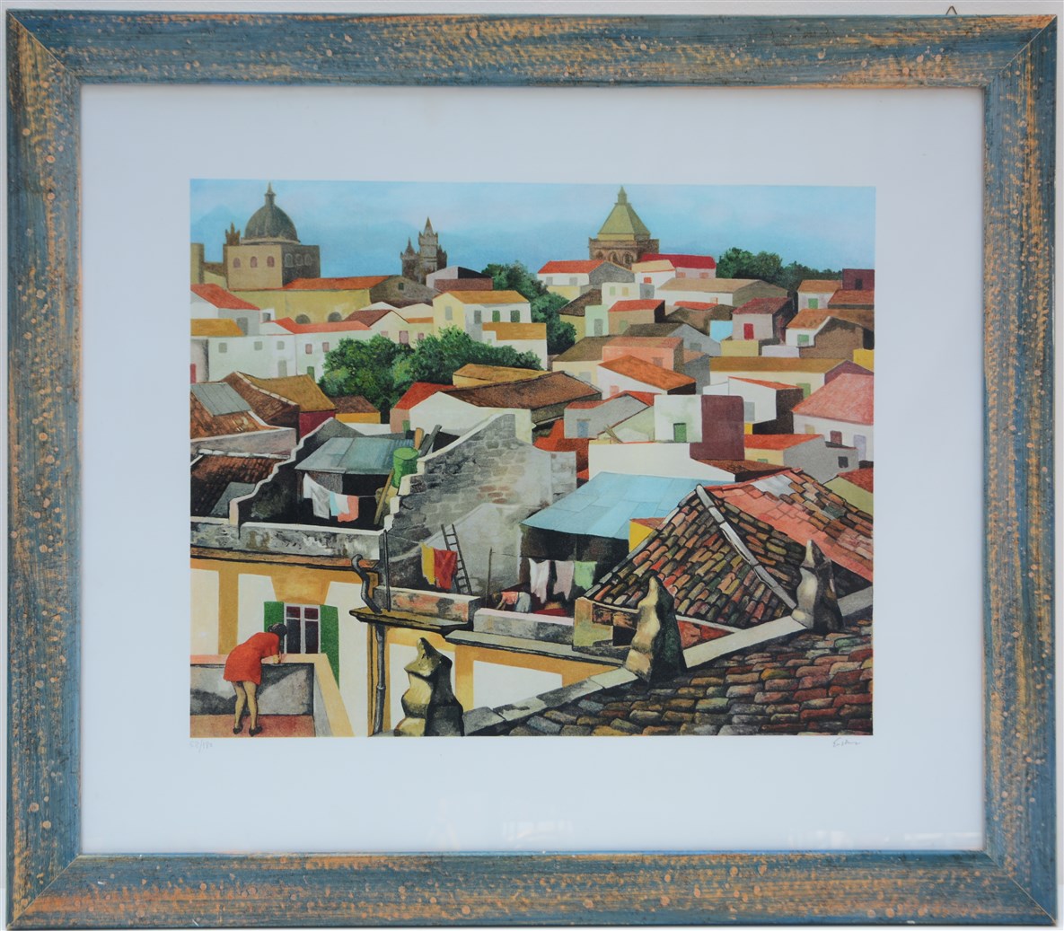 Renato Guttuso "Tetti" litografia a colori cm 67x79 numerata 52/180 e firmata i