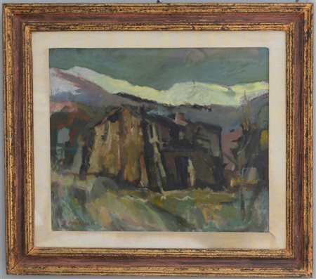 firmato e datato in basso a sinistra, timbro al retro della Galleria La Meridiana, Biella. In cornice (lievi difetti)