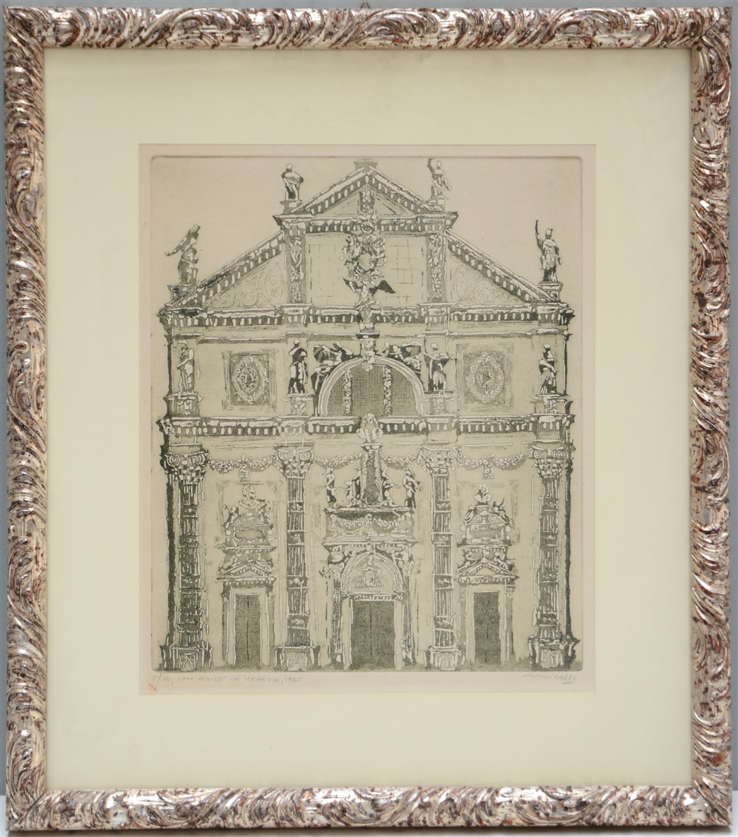 Mario Micossi "San Moisé in Venezia" 1965 acquaforte Lastra cm 39,5x33 numerata