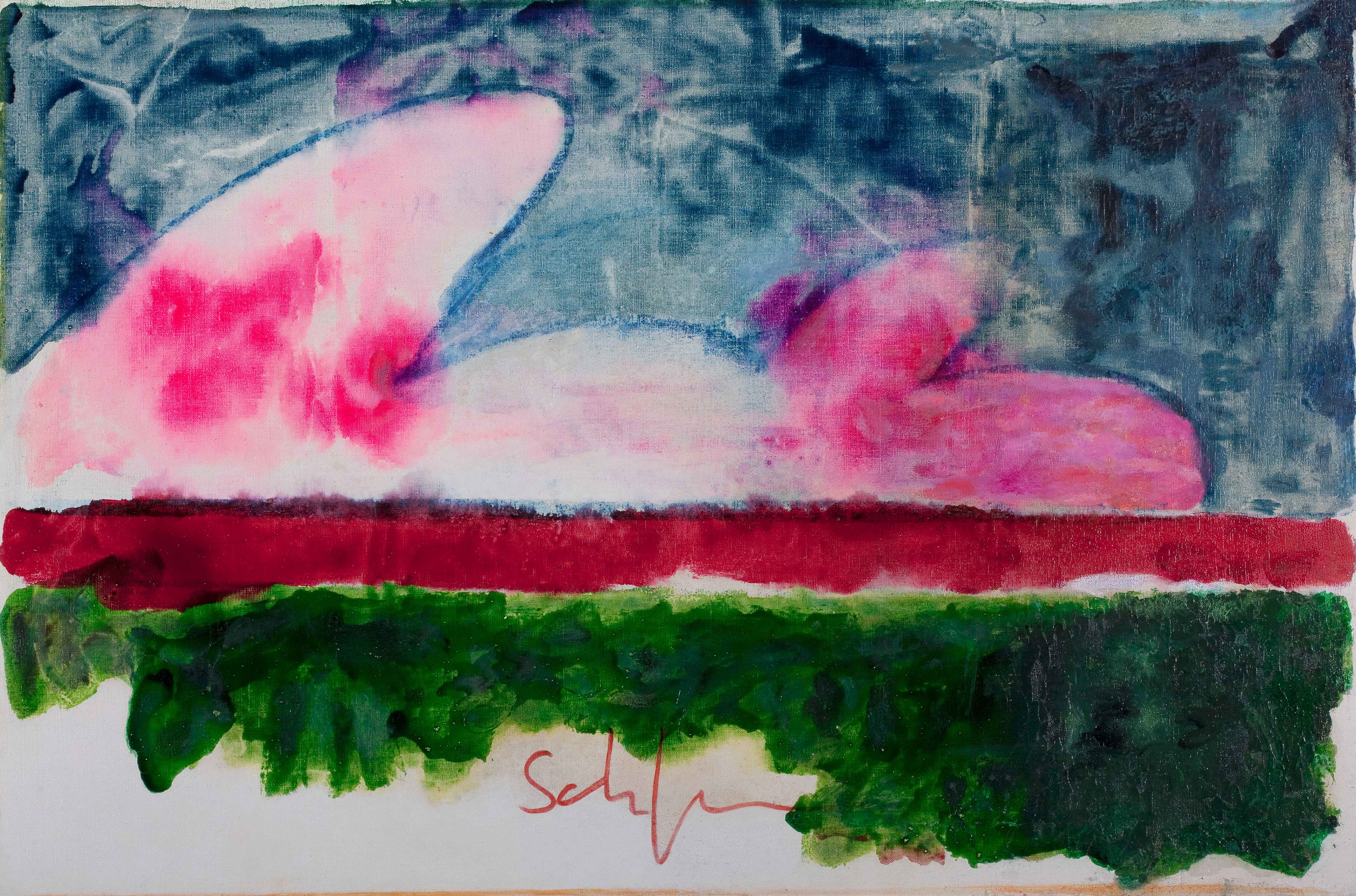 MARIO SCHIFANO Paesaggio anemico 1972 smalto su tela cm 61 x 93 firmato in basso al centro e sul retro in alto a destra autentica dell'archivio Mario Schifano n°00492070623 provenienza Rinaldo Rossi - Genova