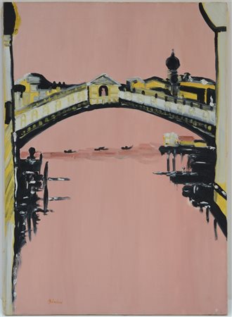 Remo Brindisi "Venezia Ponte di Rialto" anni '70 - '80 olio su tela cm 70x50 fir