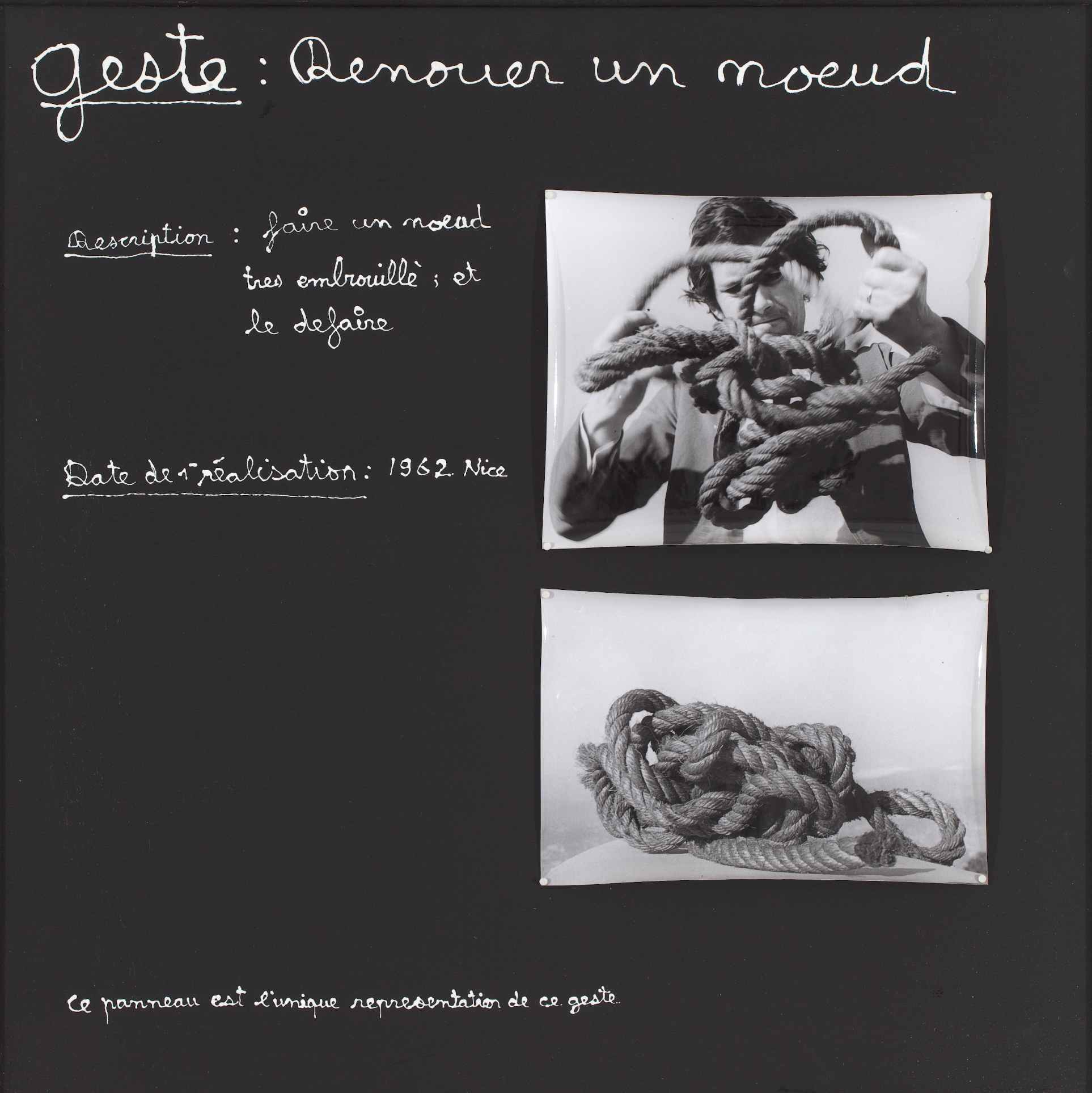 BEN VAUTIER Dénouer un noeud 1962/72 acrilico e foto su pannello cm 75 x 75 provenienza Daniel Varenne - Ginevra