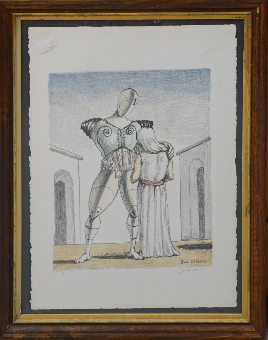 Giorgio de Chirico "Senza titolo" litografia a colori cm 71,5x50,5 numerata 44/