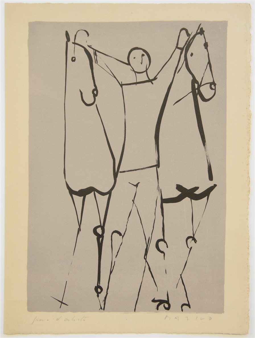 Marino Marini "Acrobata con due cavalli" 1951 litografia - prova d'artista fogli