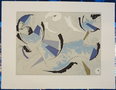 Marino Marini "Bizzarria" 1975 acquaforte a colori (lastra cm 37x49; foglio cm 5
