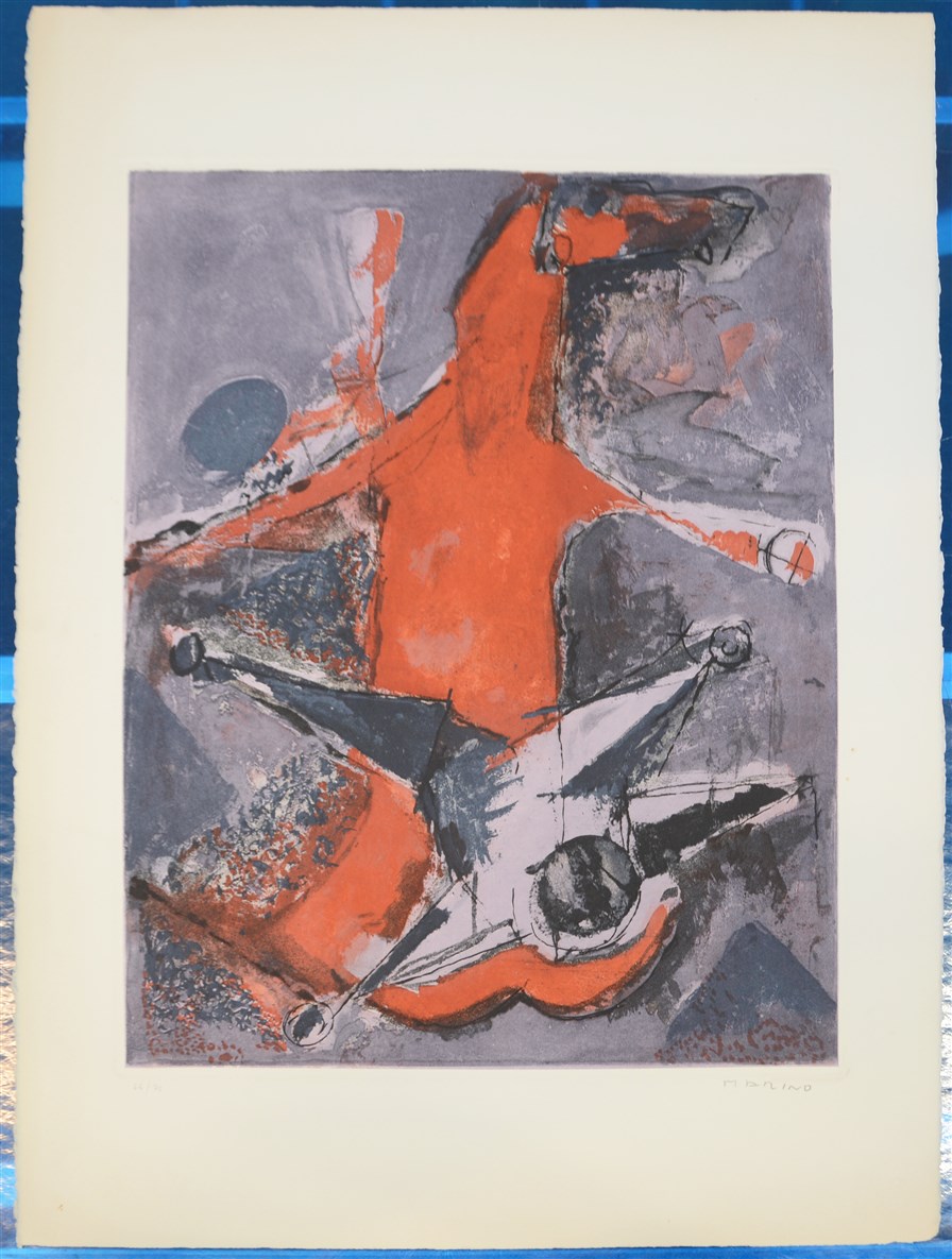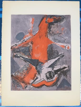 Marino Marini "Miracolo" 1978 acquaforte e acquatinta a colori (lastra cm 56x44,