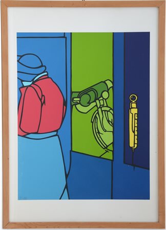 Valerio Adami "Senza titolo" serigrafia a colori foglio cm 99x68,5 numerata 41/