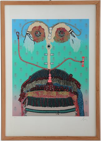 numerato XLV/L e firmato in basso a matita. Dalla serie "Le Dame di casa Baj". In cornice