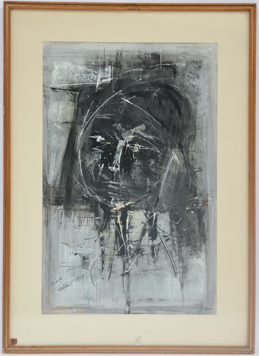 Piero Garino "Testa femminile su fondo nero e grigio" 1958 tecnica mista su cart