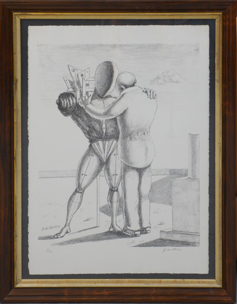Giorgio de Chirico "Senza titolo" litografia in bianco e nerocm 71x50,5numera