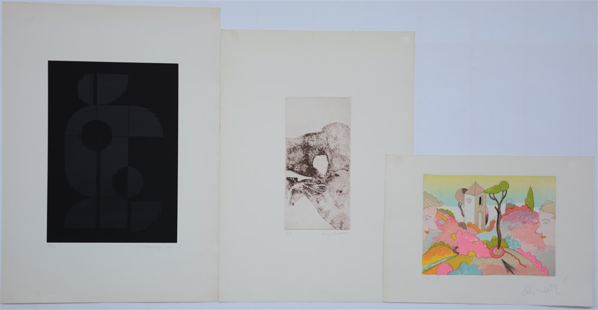 Lotto composto da due manifesti espositivi su Emilio Greco, firmati e tre grafiche rispettivamente di Lorenzo Tornabuoni, Luca Alinari e C. Cremonesi