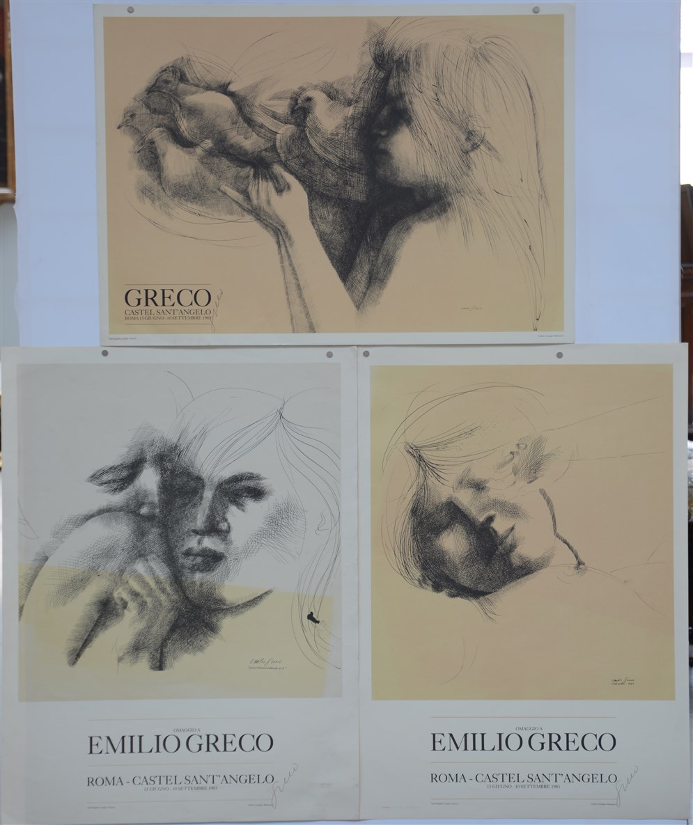 Lotto composto da due manifesti espositivi su Emilio Greco, firmati e tre grafi
