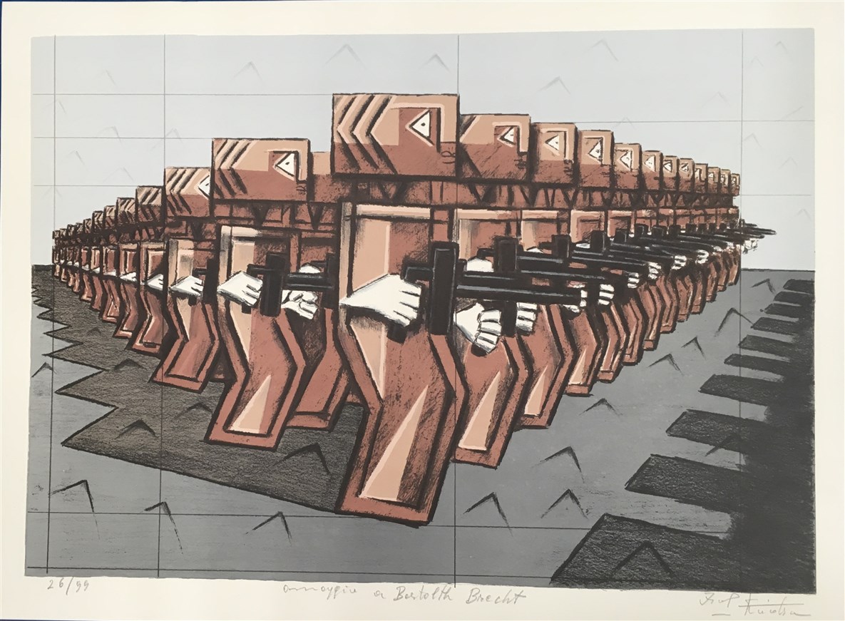 Ibrahim Kodra "Omaggio a Bertolt Brecht" litografia a colori cm 46x62 numerata