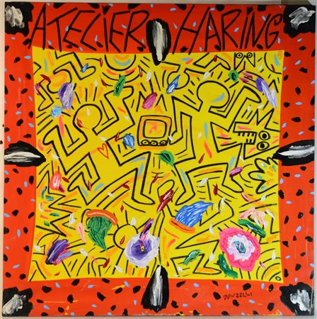 Bruno Donzelli "Atelier Haring" acrilico su tela cm 100x100 firmato in basso a