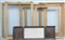 Lotto di cinque cornici in legno e pastiglia dorata di epoche, dimensioni, decori e misure diverse. Unite ad un pannello decorato con scene di battaglia in rilievo (difetti e mancanze)
