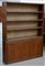 Piccola libreria a due corpi con ripiani a giorno, base pannellate e riquadrata