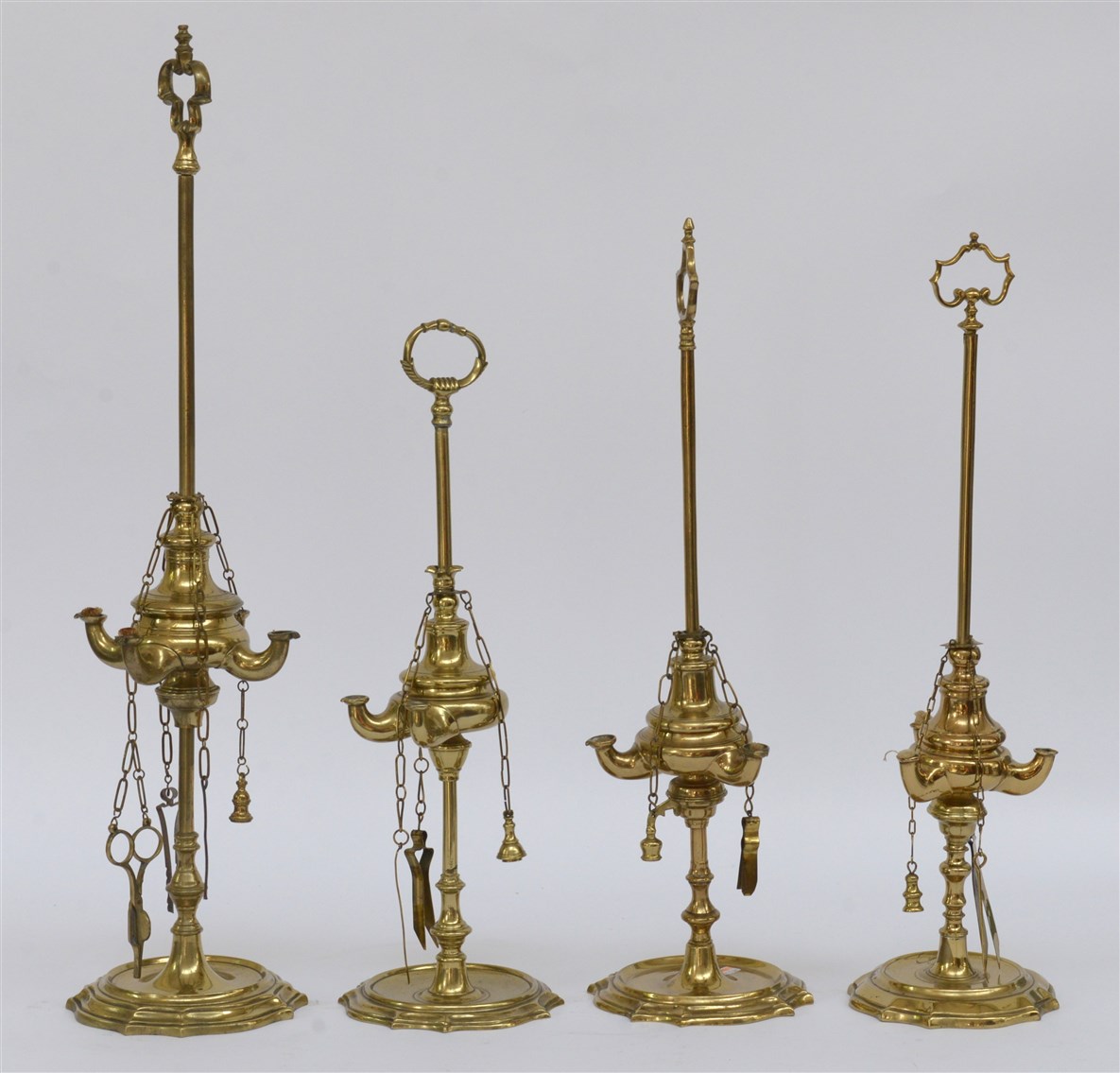 Lotto 3473 | Lotto composto da quattro lampade fiorentine in ottone di diversa fattura (dife