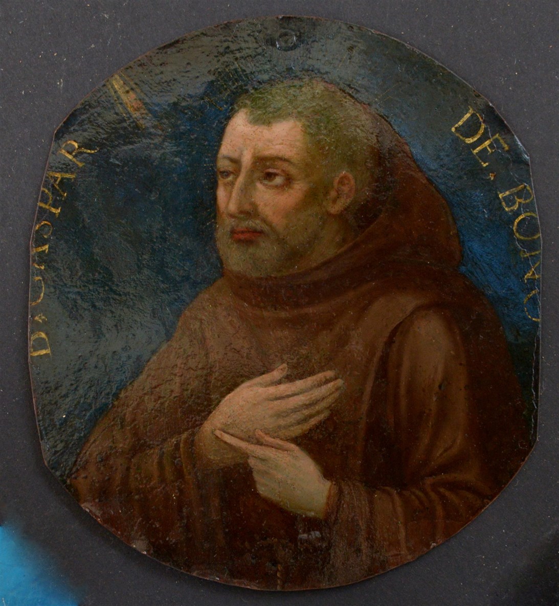 Scuola del secolo XVII "Fra Gaspare de Bono" olio su rame (cm 12,3x10,6) (difetti e restauri)