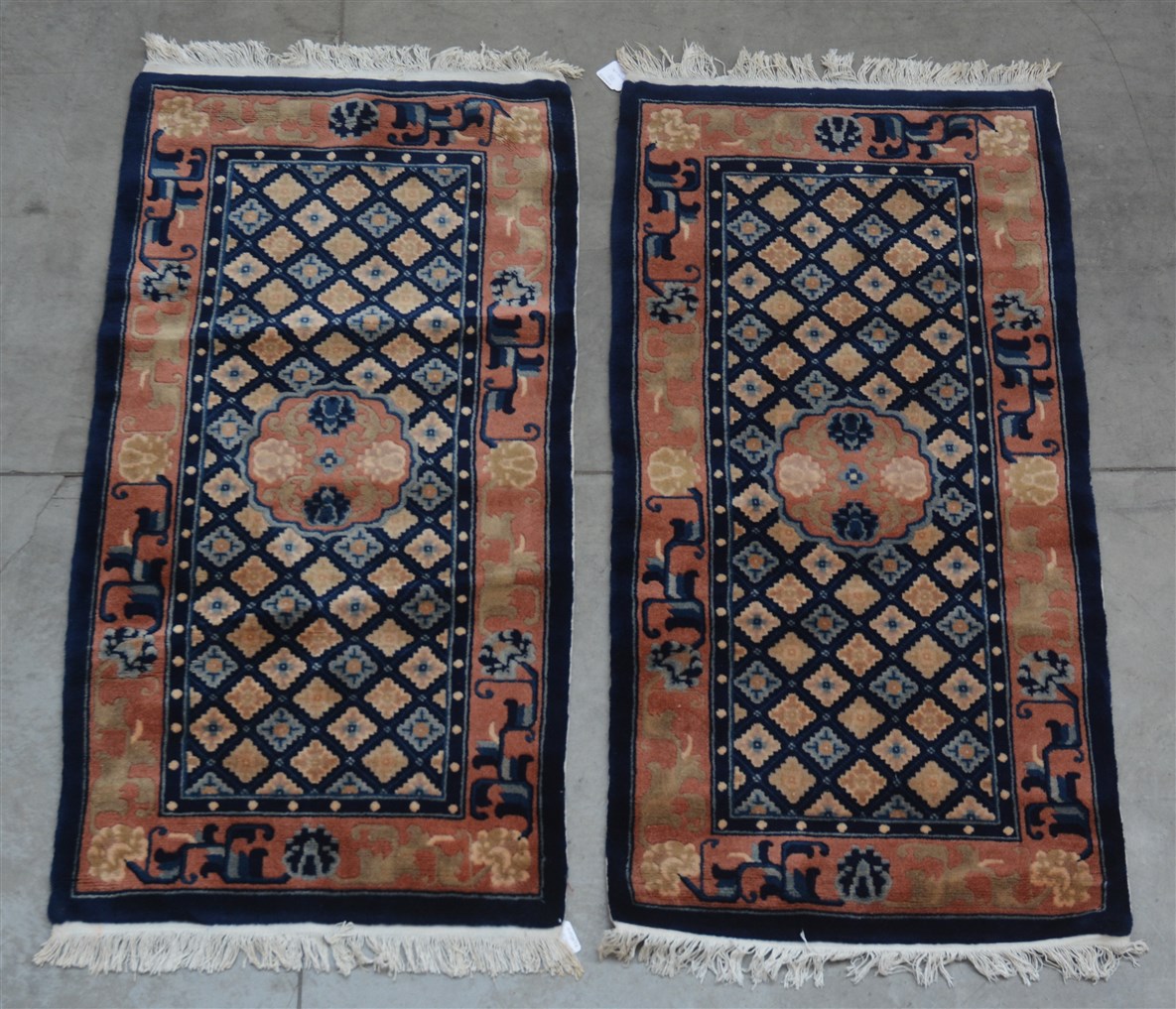 Lotto 3528 | Coppia di tappeti Pao Tao, Cina, secolo XX. Decoro a griglia e piccolo medagli