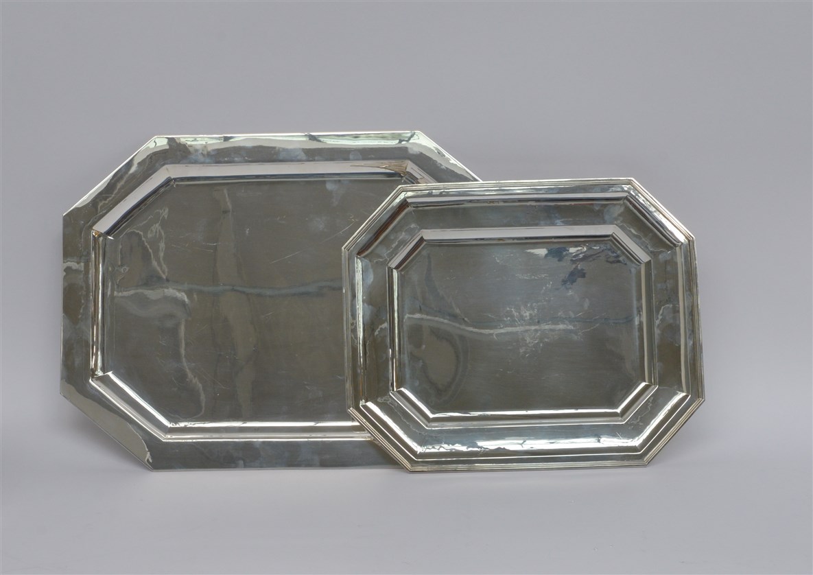 Due vassoi di forma ottagonale in argento, argentiere Bedetti-Roma (gr 2900) (difetti)