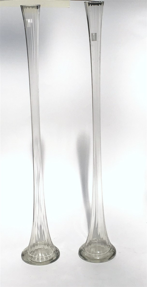 Lotto 3582 | Coppia di vasi in vetro incolore a collo stretto (h. cm 80) (difetti)