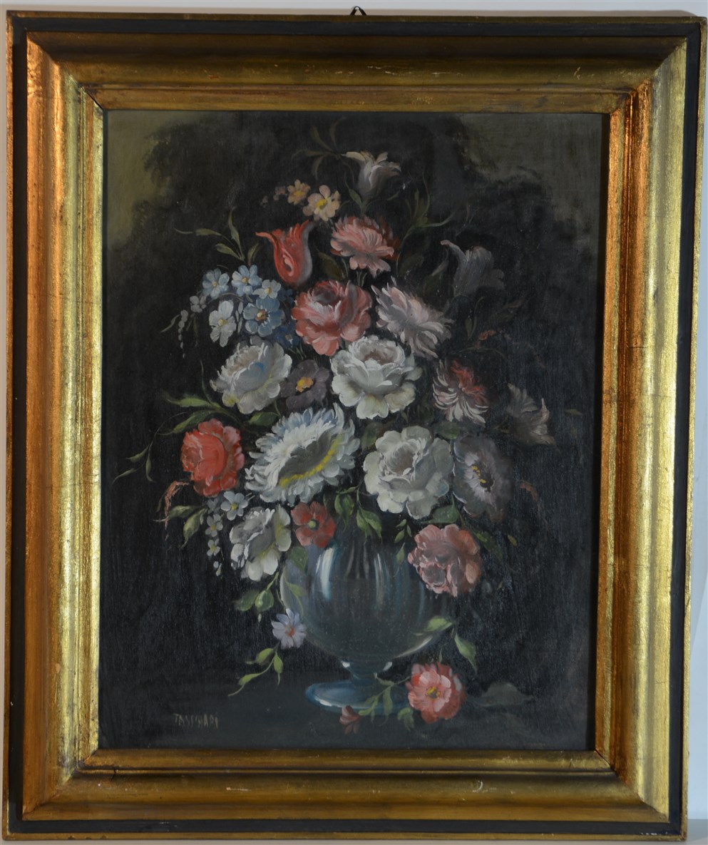 Gino Tassinari "Vaso con fiori", olio su compensato (cm 50x40) firmato in basso